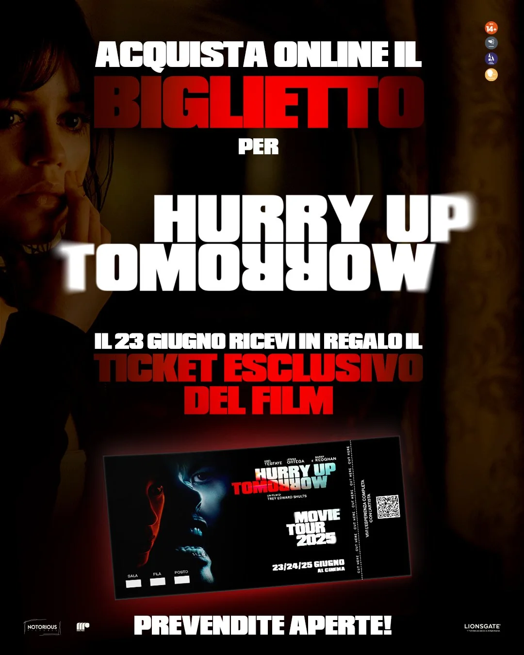 In occasione dell’uscita evento del film “Hurry Up Tomorrow”, in sale Unici selezionate potevi ricevere il ticket esclusivo del film (fino ad esaurimento scorte). La promozione dell’attività è stata svolta sui canali social delle strutture coinvolte.